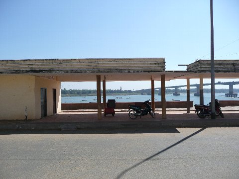 日本橋を渡りプノンペンの街に入る |