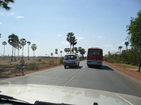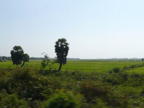 砂糖椰子の木を見ながらプノンペンに向かう |